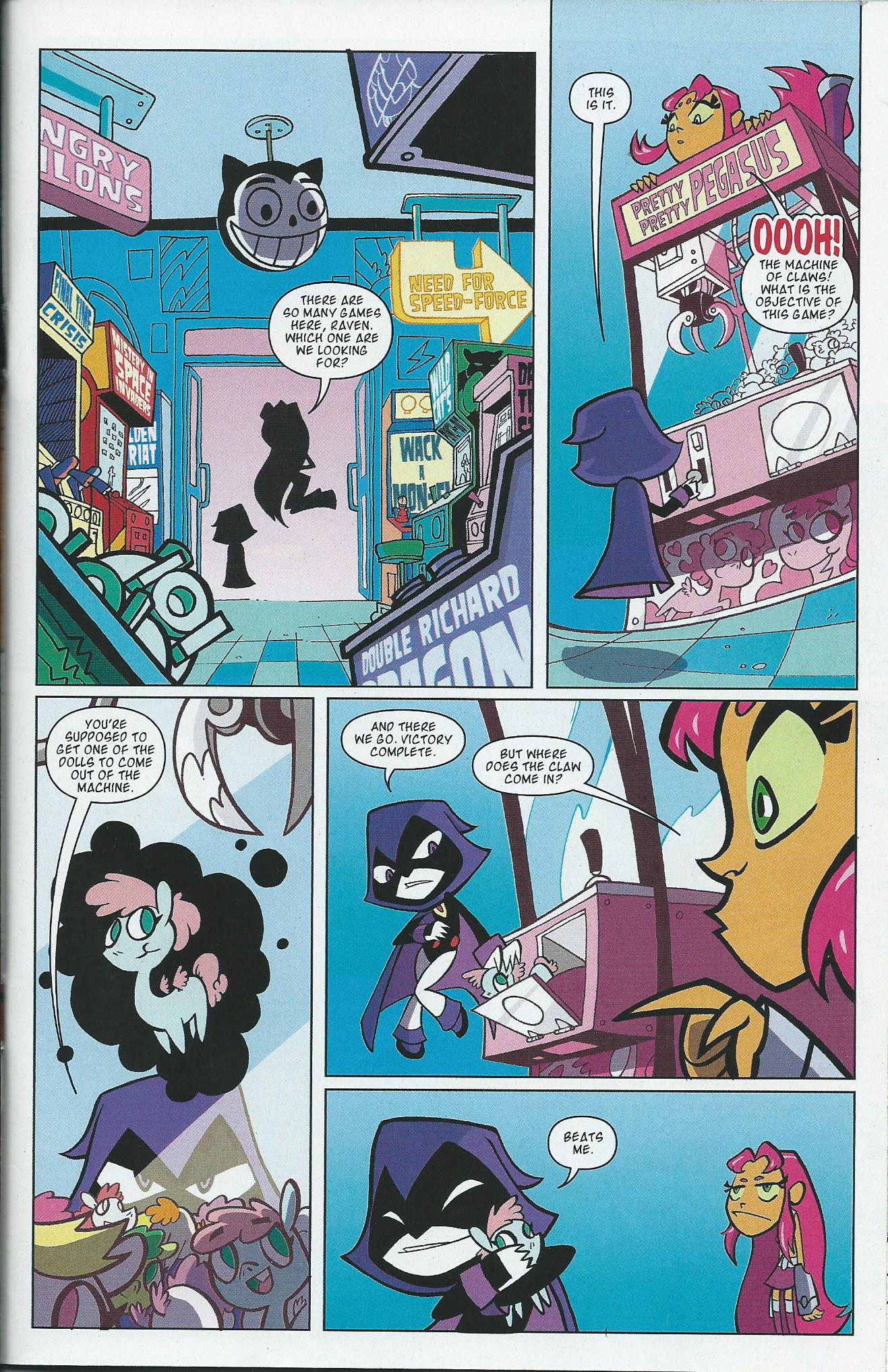 Starfire asks Raven about the claw that’s supposed to grab the prize. I’m not spoiling it here, you’ll just have to read it for yourself to find out what really happened.