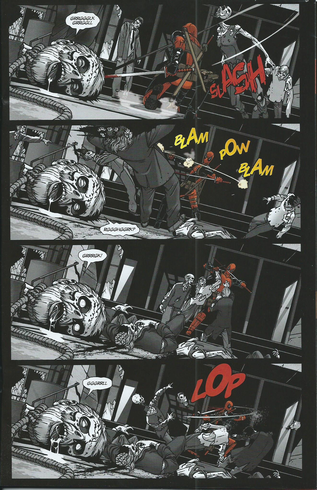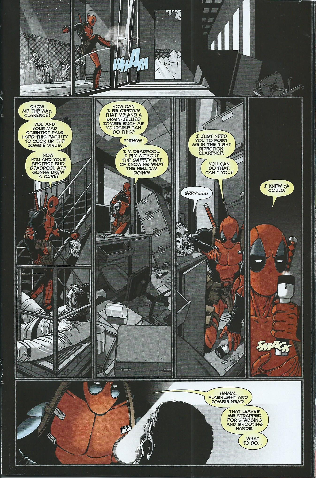 Previously, Deadpool was zombified for a brief moment or two. However that brief moment was enough time to wipe out the small, virus-free town he discovered earlier in the series.