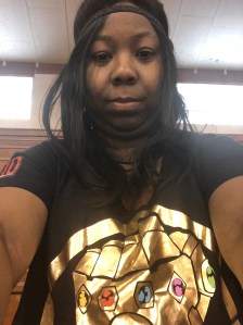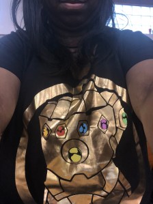 I am hoping to get back in the swing of things within a few weeks. But in the meantime you get to see a couple of selfies I took while sporting my authentic Infinity War t-shirt. It is a 10 year Marvel Movie Studios commemorative.