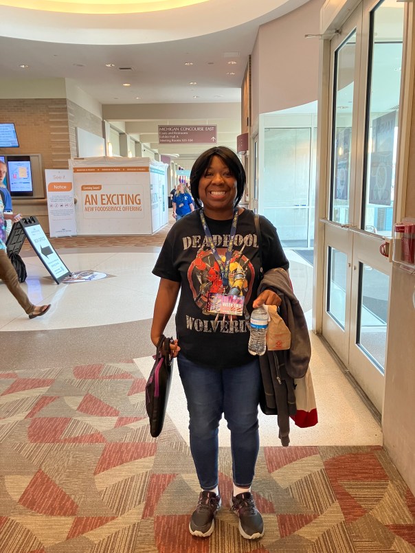 I absolutely love attending comic cons because it’s the only time you can be yourself without judgement. I can be my true nerdy self and talk and laugh with other people who are like me. I am a nerd and an introvert, and I can attend a comic con and NOT be looked down upon, or talked about, because I read comic books, or that I’m a diehard Star Trek (especially TOS and TNG) and Dr. Who fan.